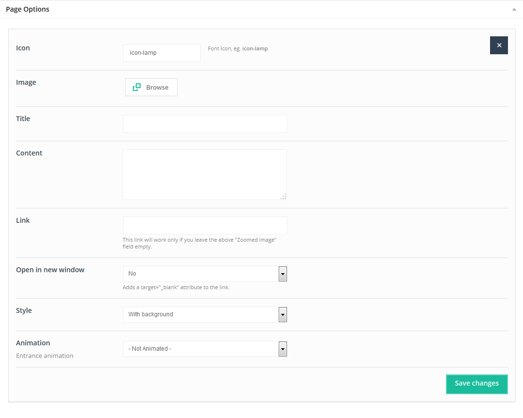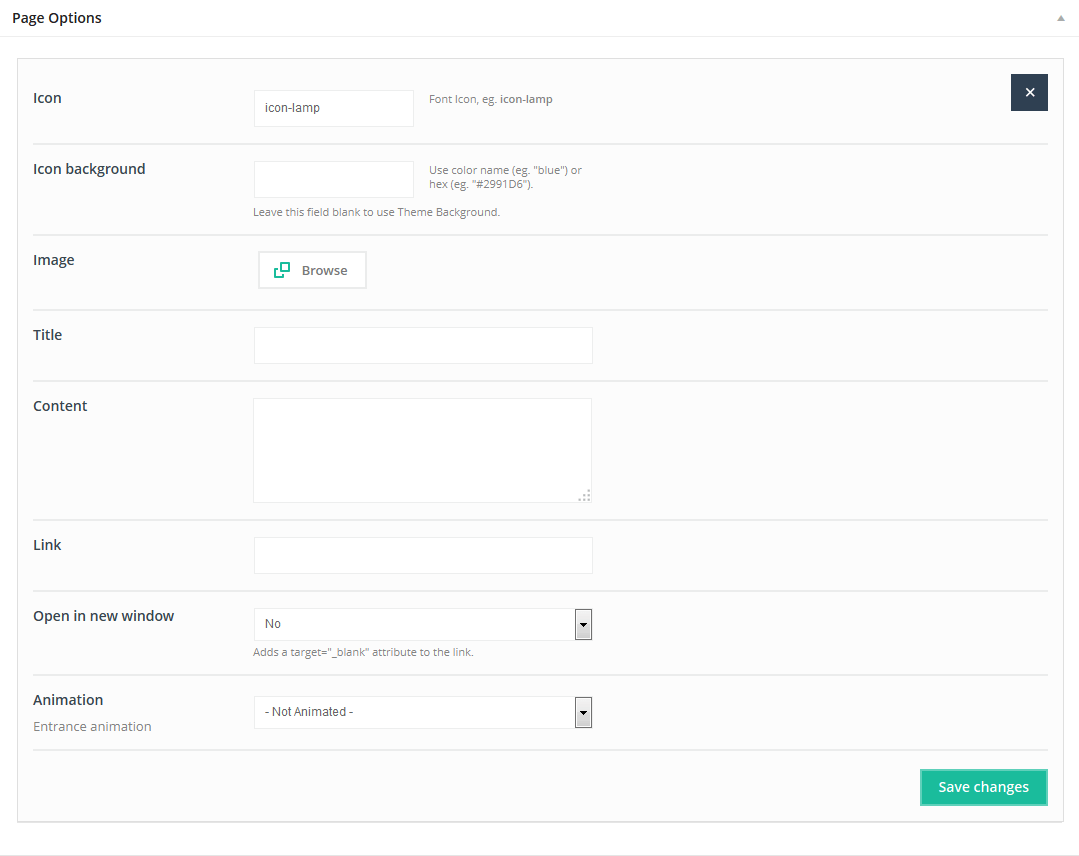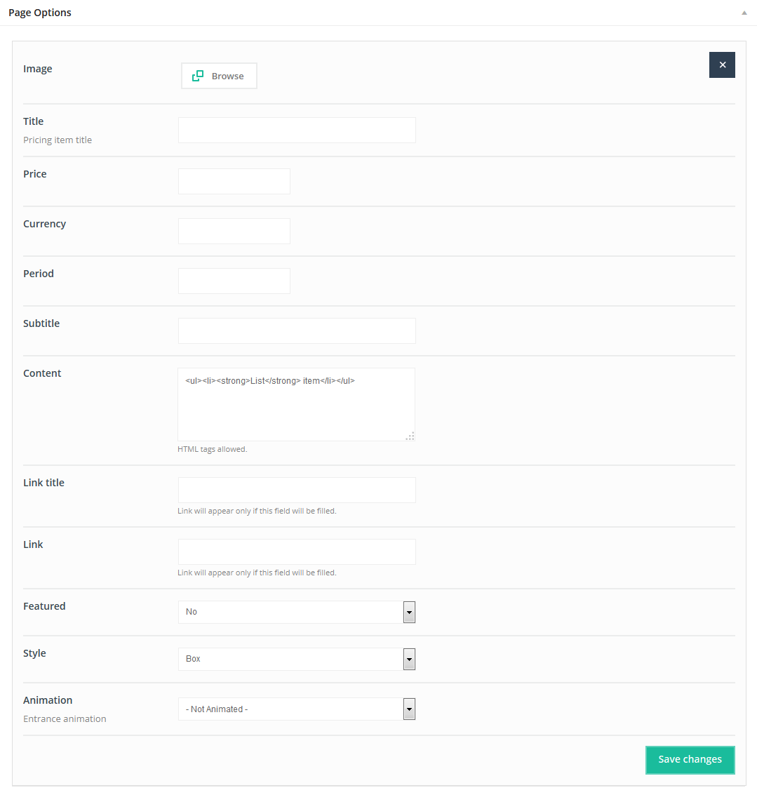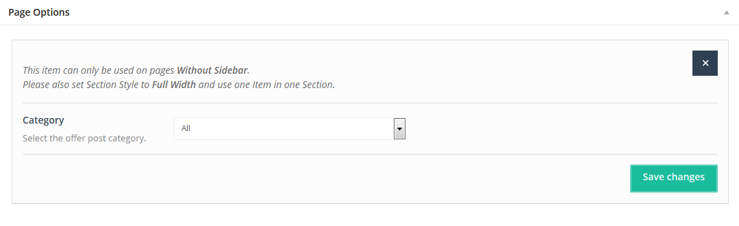 This item doesn`t have any attributes. Remember that Offer item can be used only on pages without sidebar and section must be setup on Full Width.