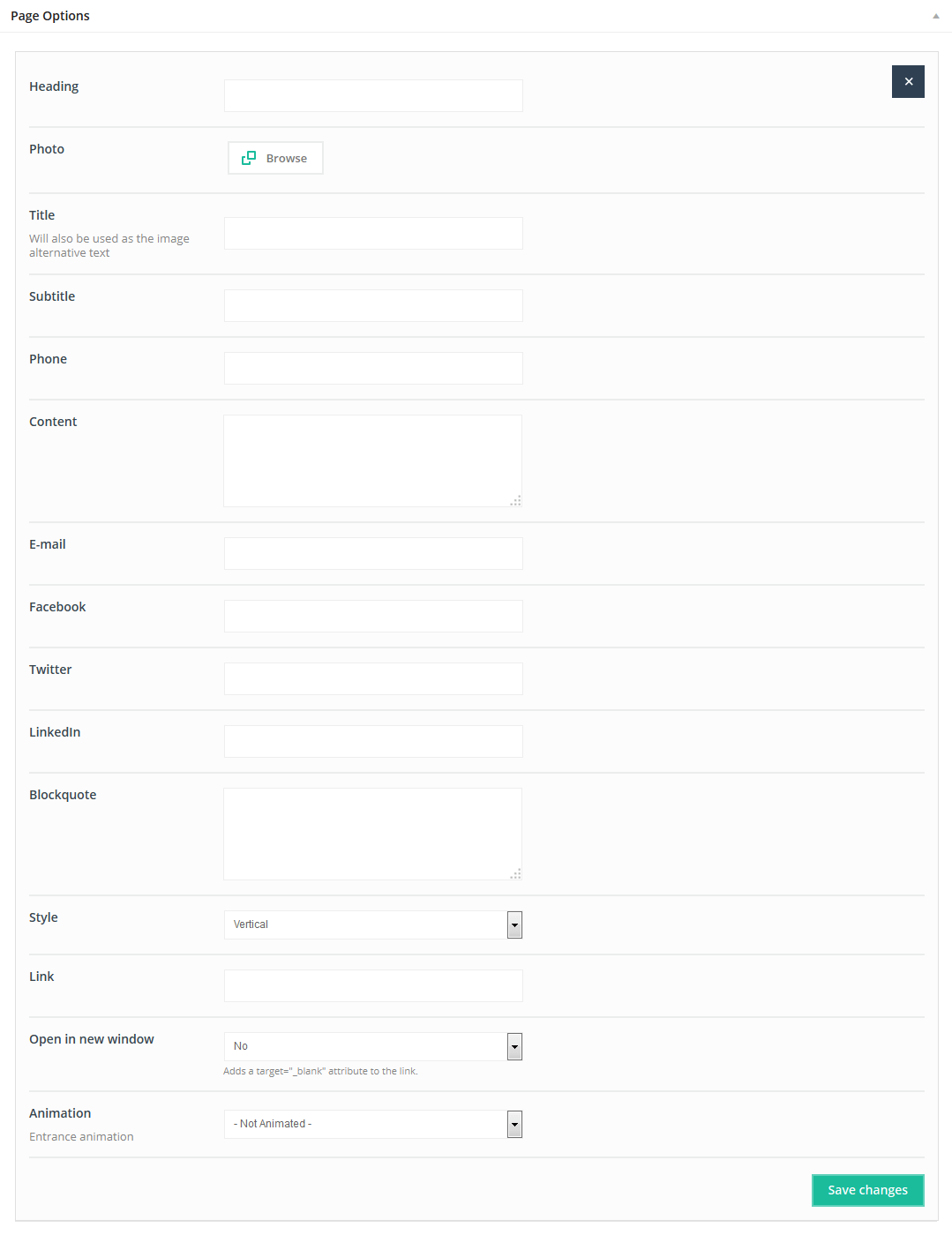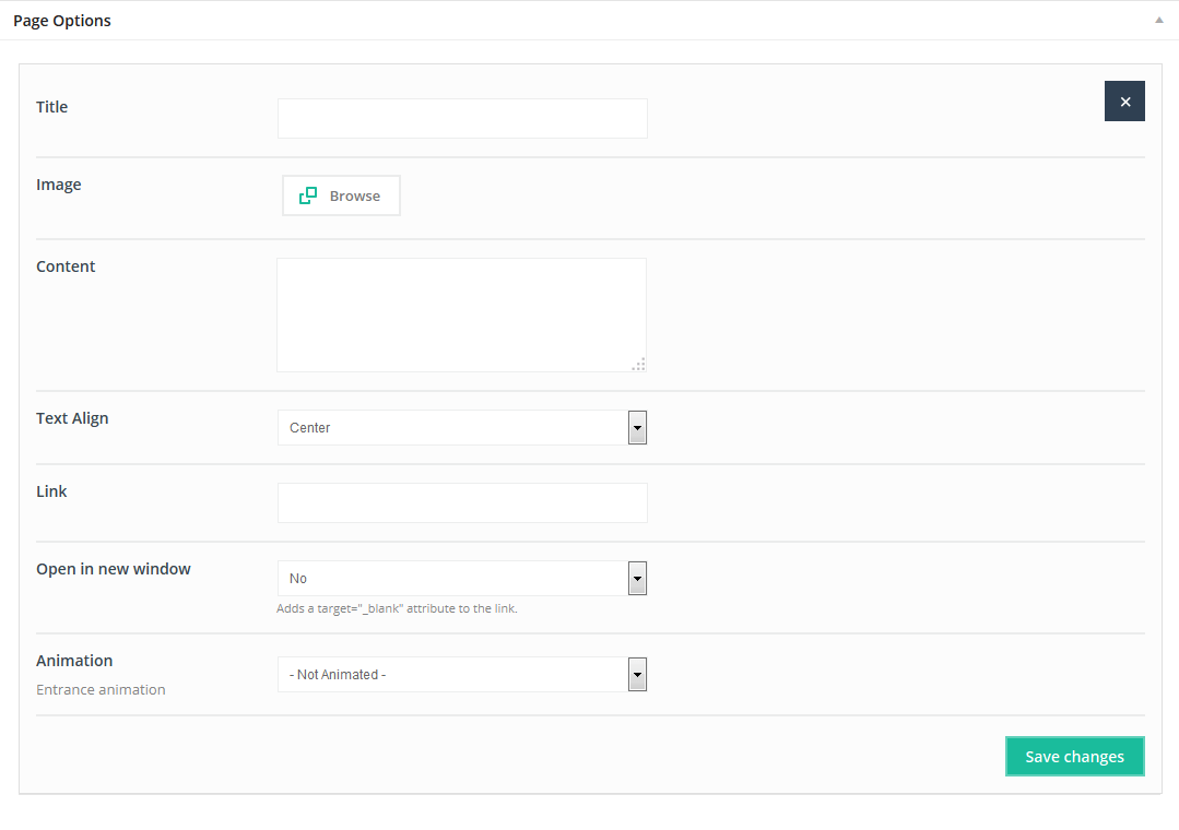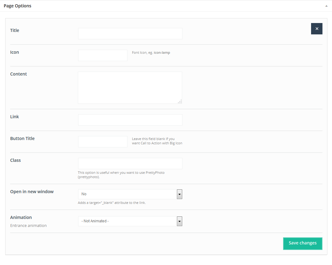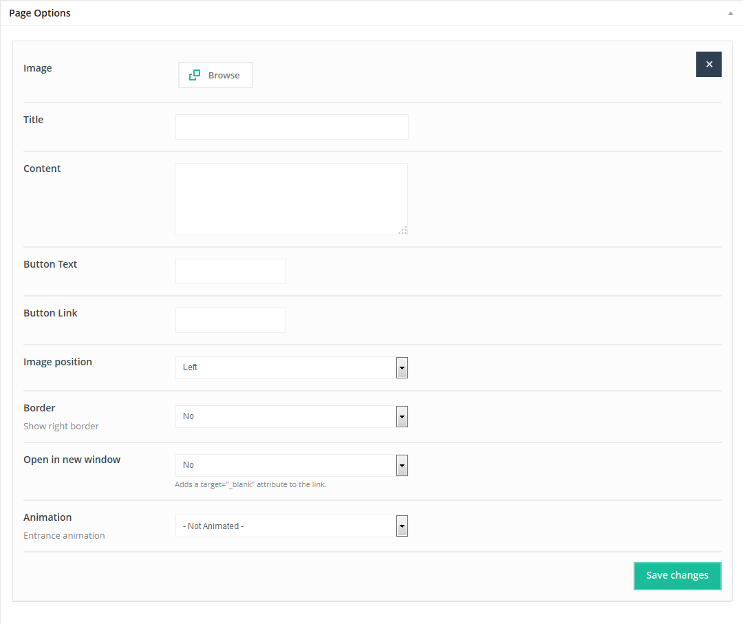 This item doesn`t have any attributes. Remember that Offer item can be used only on pages without sidebar and section must be setup on Full Width.