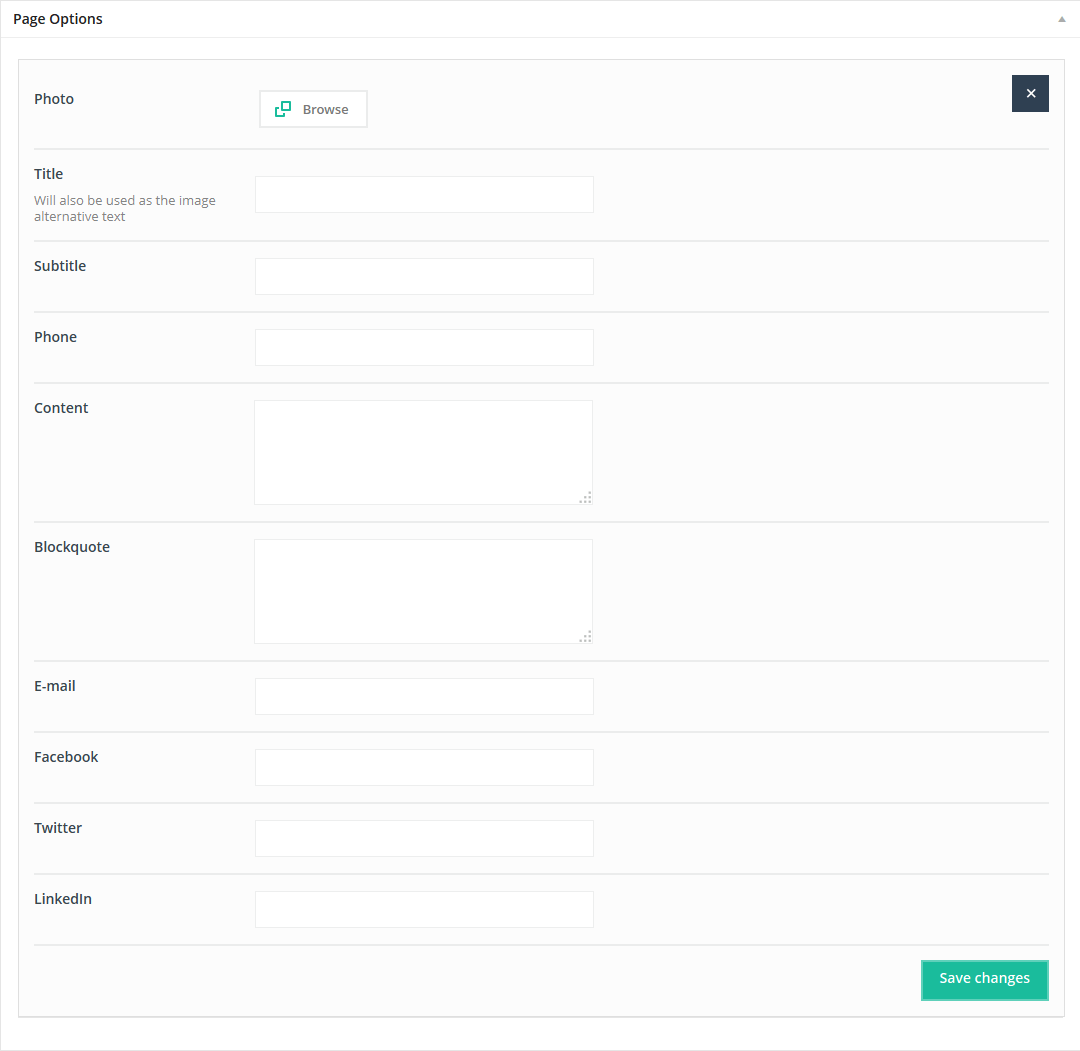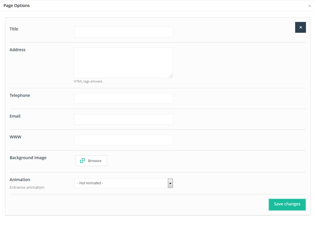 Of course you can also set up options like Title, Meta Description and Meta Keywords for each page in this theme. You can do it in Pages > Add page > Page options.