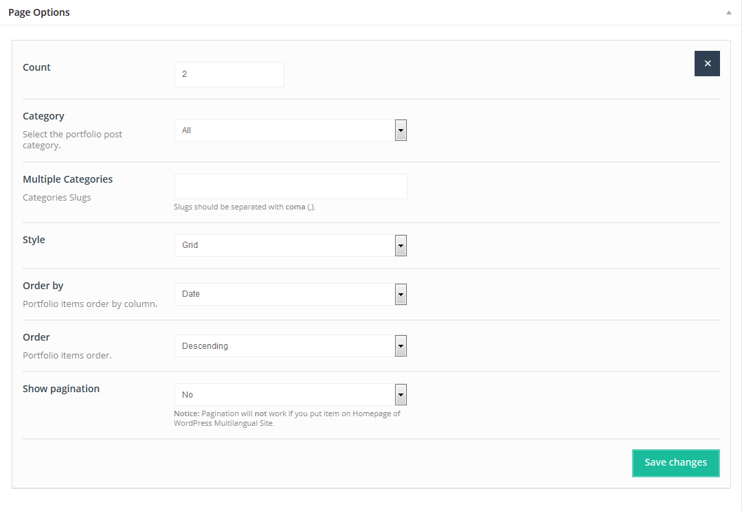This Item will create Portfolio (the same items as on portfolio page) in any place you want. Use your portfolio items with any other shortcodes on page.