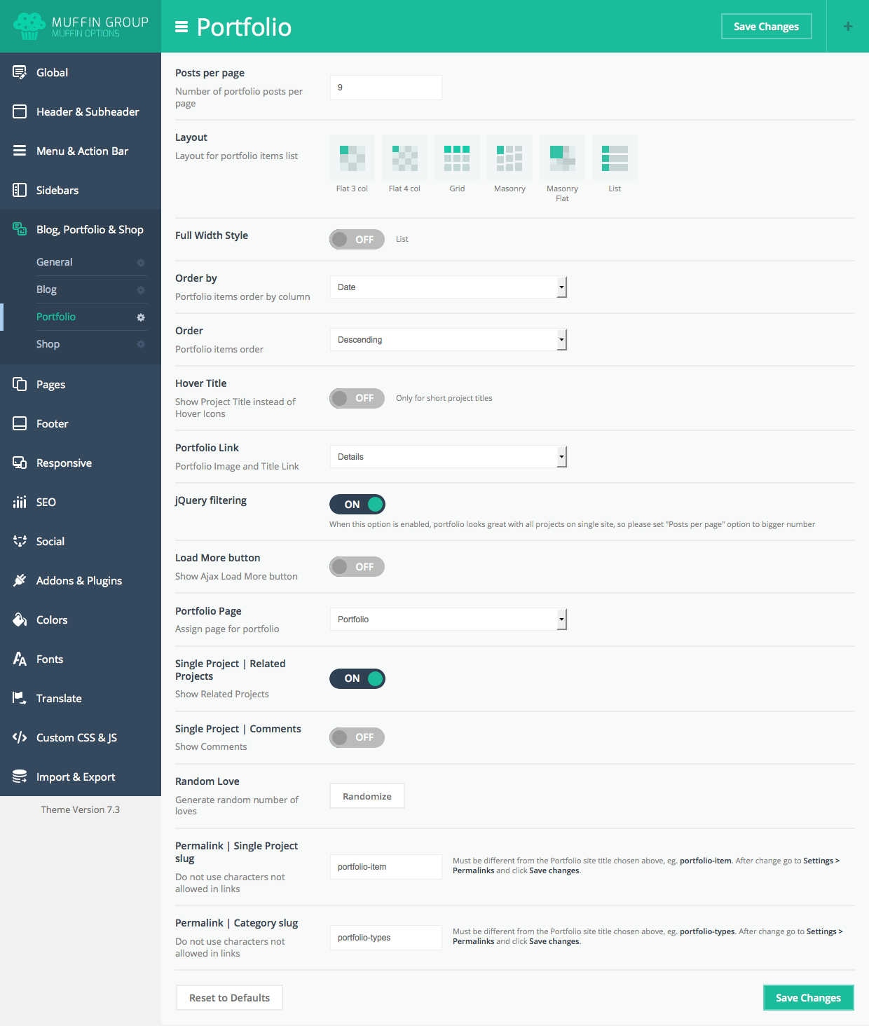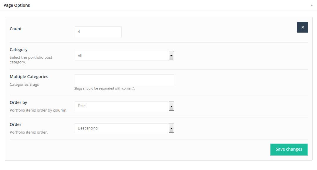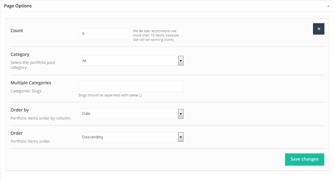 We have created some options for Portfolio page. You can find them in Theme options panel > Blog, Portfolio & Shop > Portfolio. More info about these options can be found in Theme options panel.