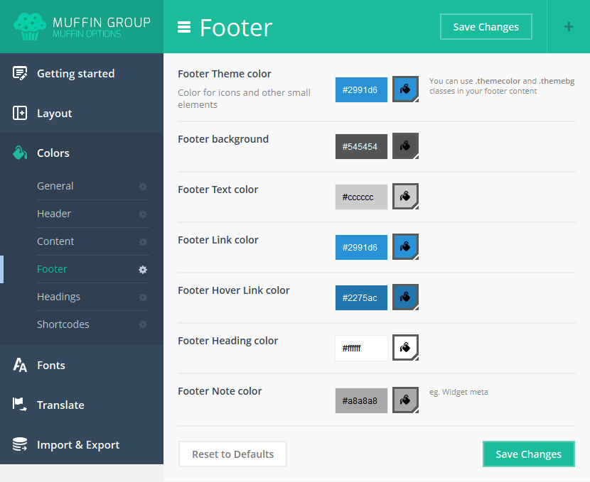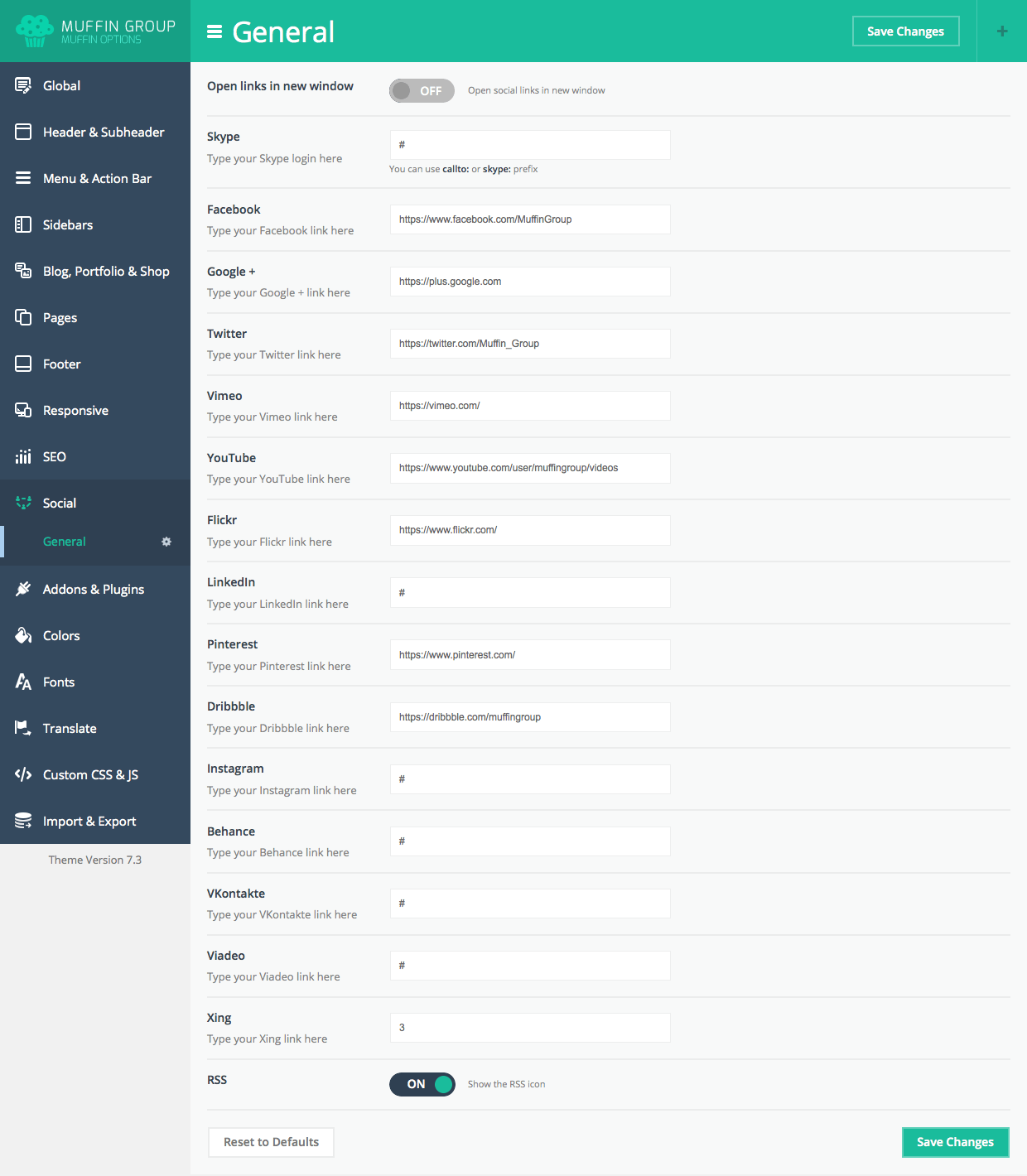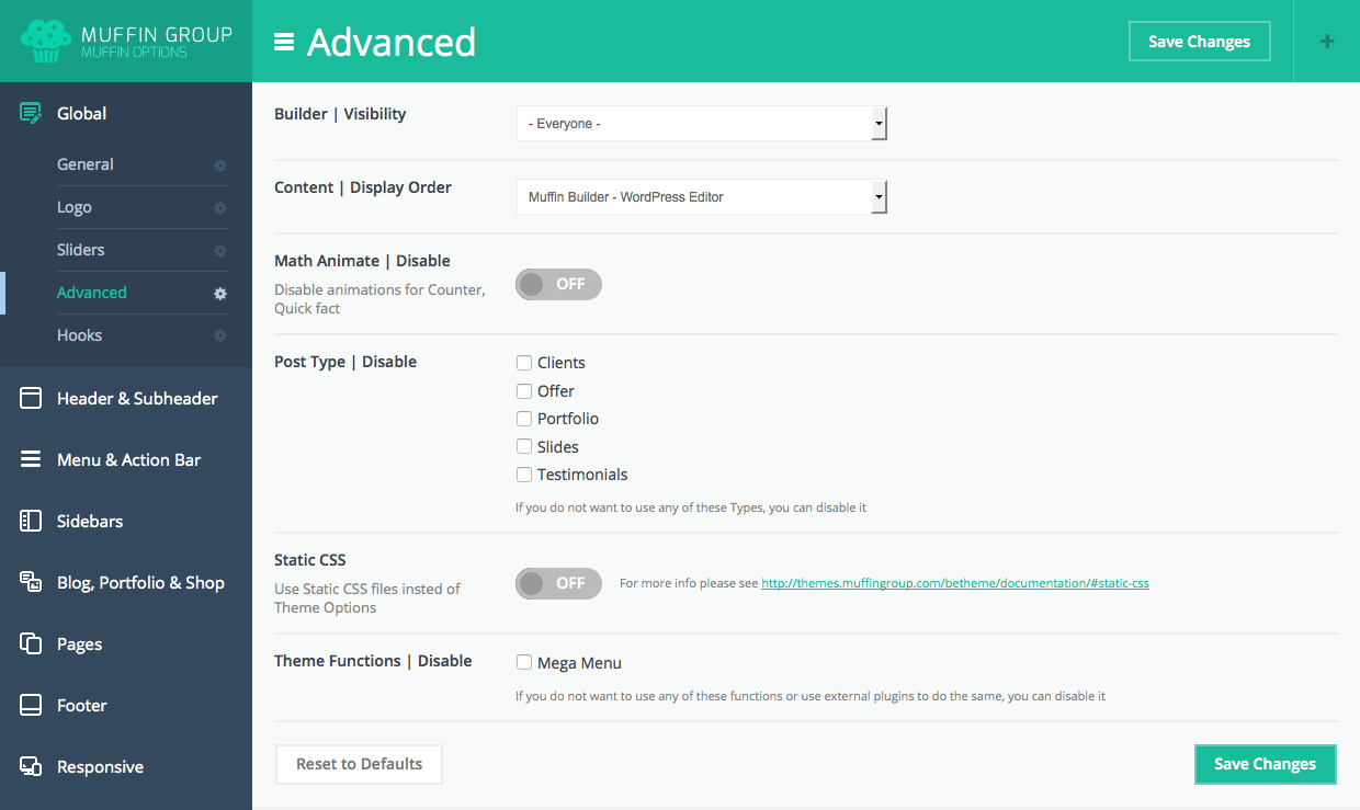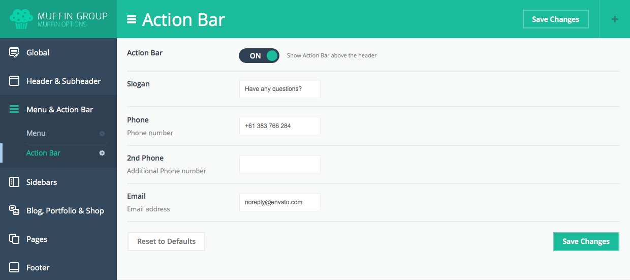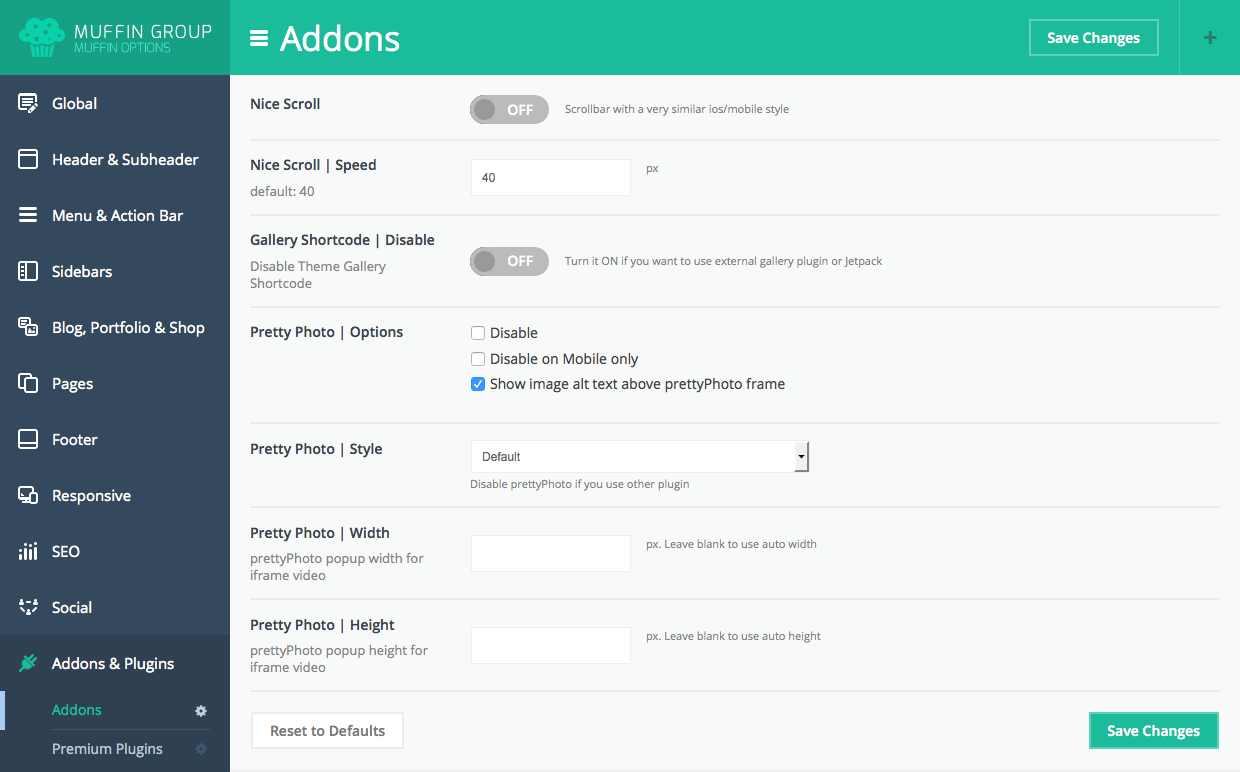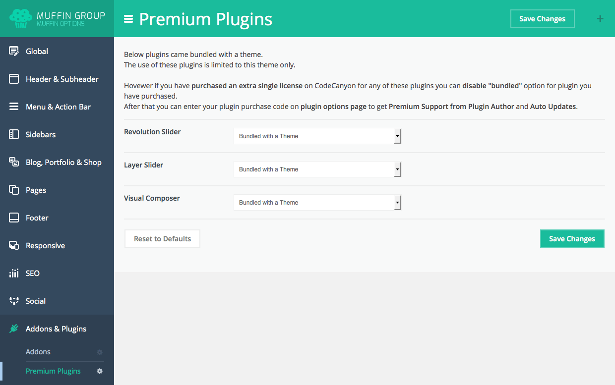 Since version 6.0, you can transform Muffin branded panel to white label. With this option all our logos or muffin texts and links will be removed. To transform Muffin Options panel to white label, please open functions.php file on your FTP and replace below part of code: