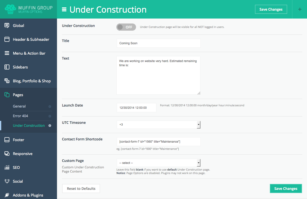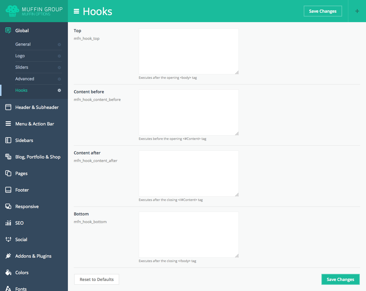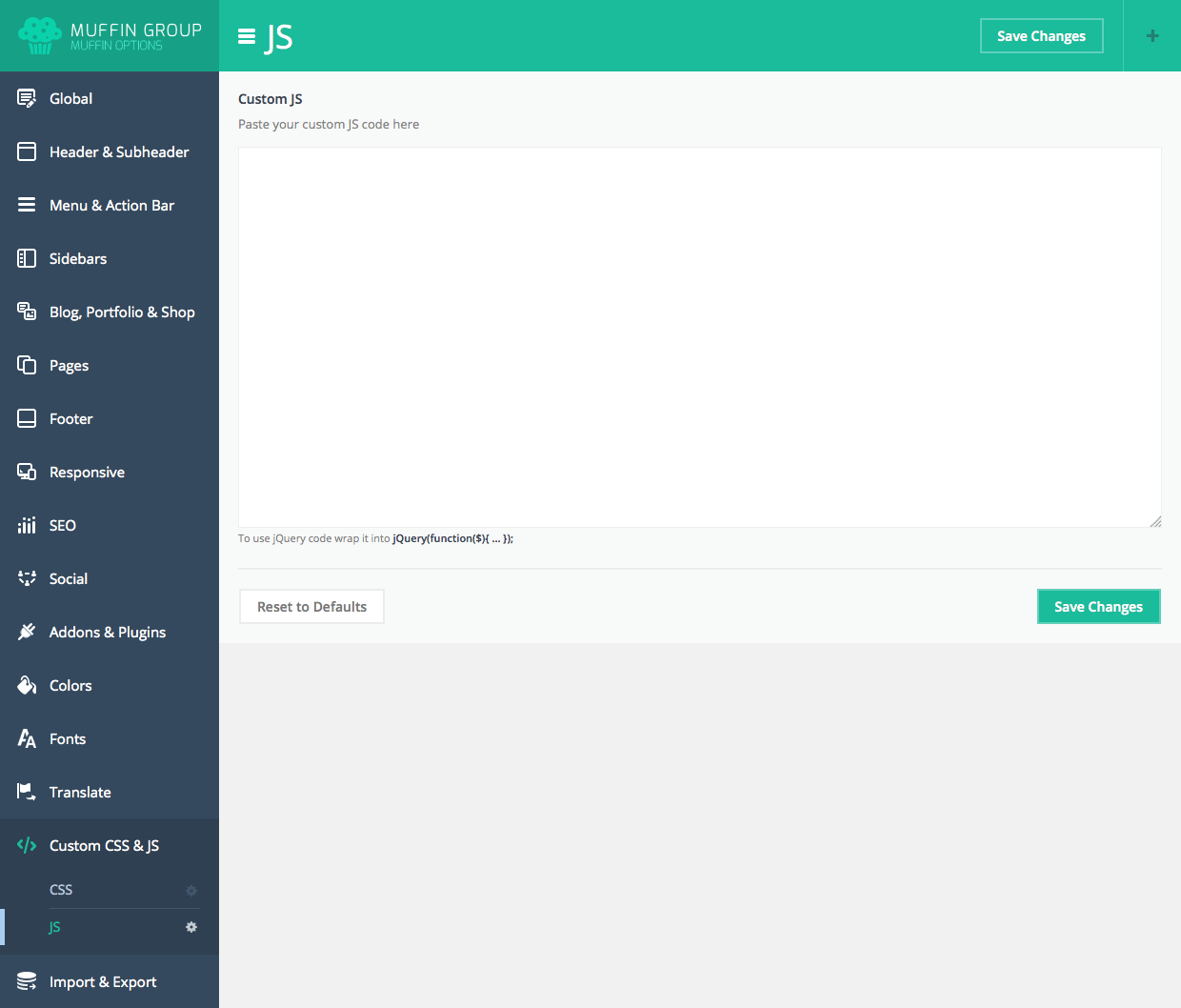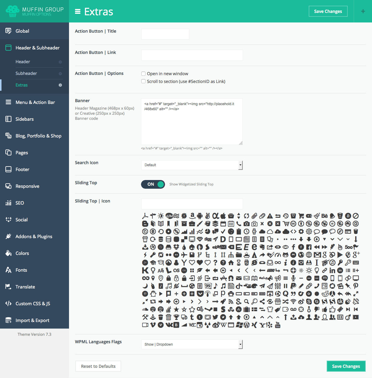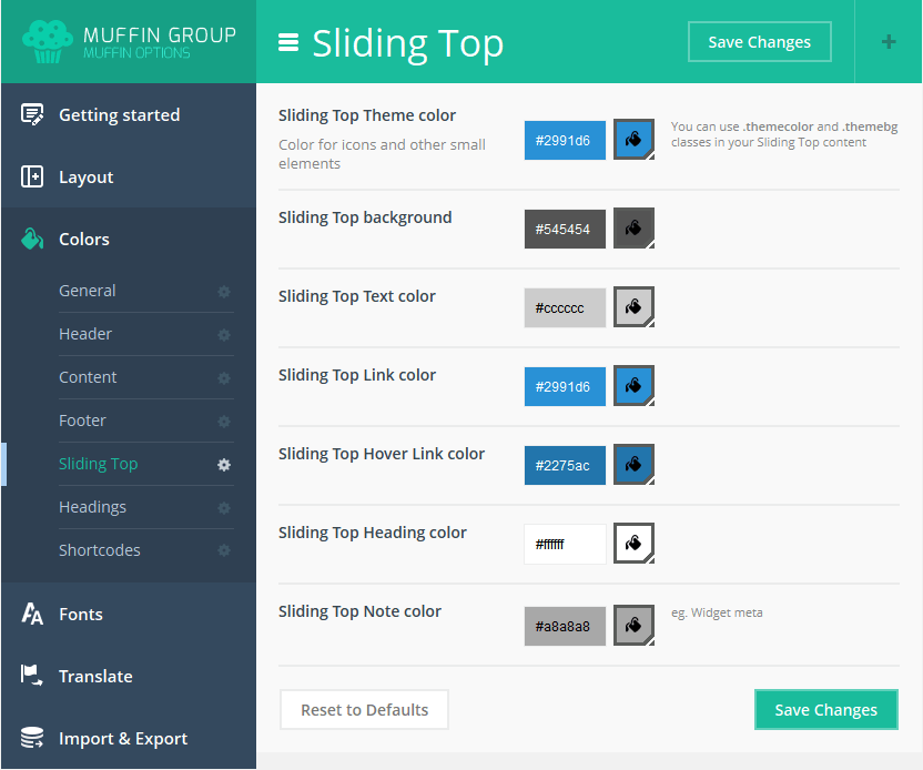 Since version 6.0, you can transform Muffin branded panel to white label. With this option all our logos or muffin texts and links will be removed. To transform Muffin Options panel to white label, please open functions.php file on your FTP and replace below part of code: