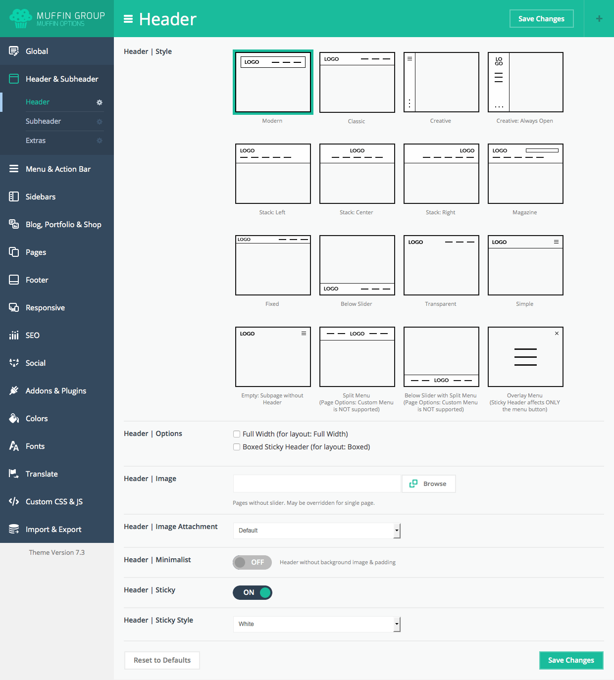 To setup header layout, please navigate to Appearance > BeTheme Options > Header & Subheader > Header section and choose one of available layouts. Below header styles, you can also setup some other options that we listed below: