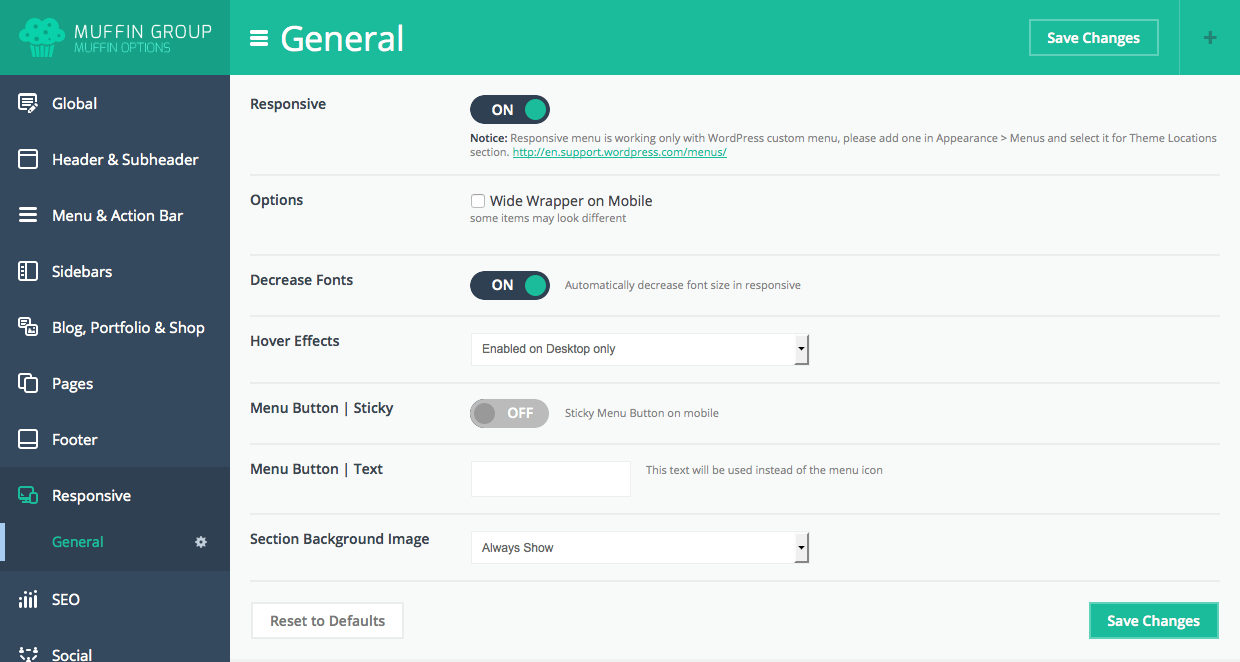 You can also Reset settings from this section to default if you want so your theme will look like on our demo version.
